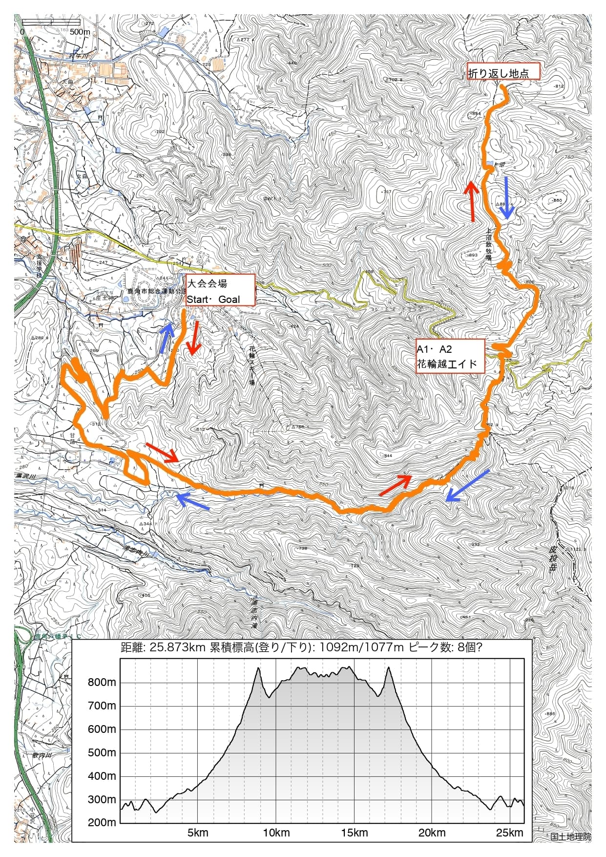 鹿角花輪トレイルのコースは、往復コースとなっています。